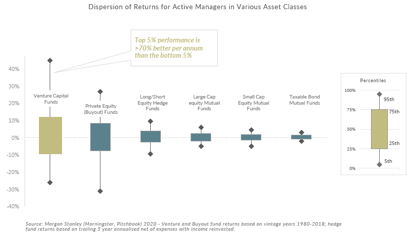 This means that there is far more to gain (or lose) when selecting which Venture managers to back. Investors accustomed to selecting managers across other asset classes need to take a very different tack when investing in Venture Capital.